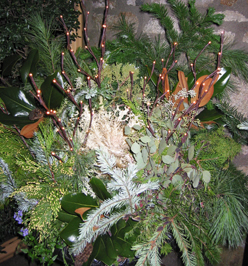 • Winter: Pots, wreaths, swags, ornaments, lights